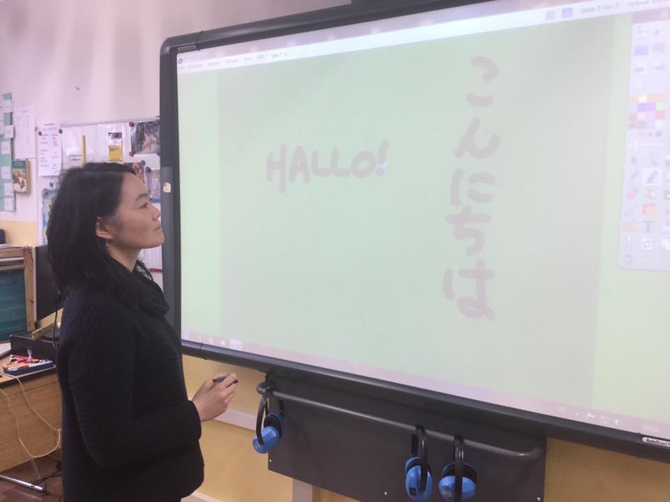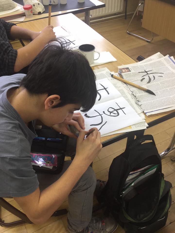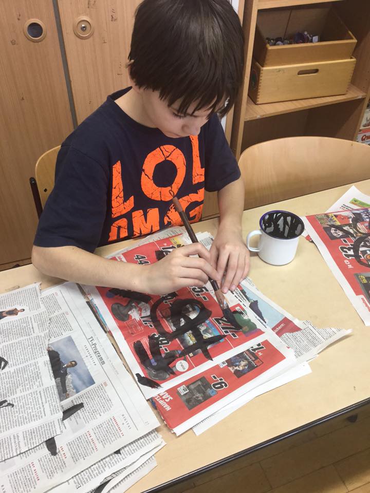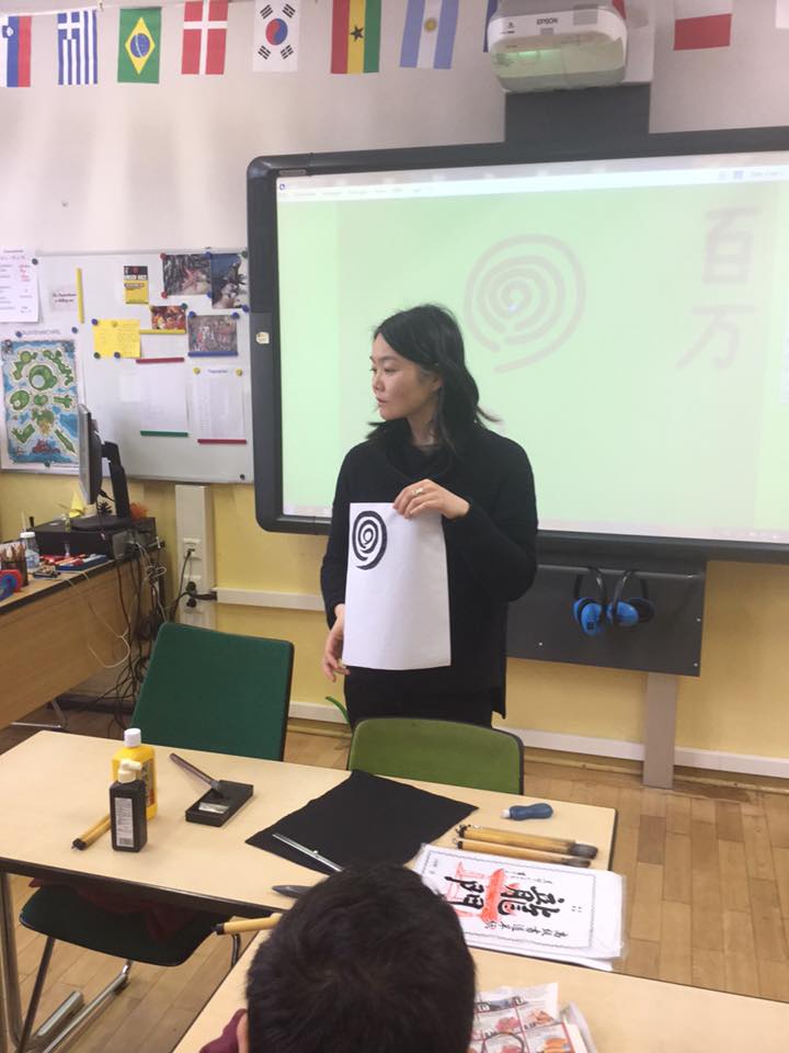 The class started with a little history about Japanese calligraphy and the language system. The children had a lot of questions and I started to worry if we would have enough time to write. But finally it began.