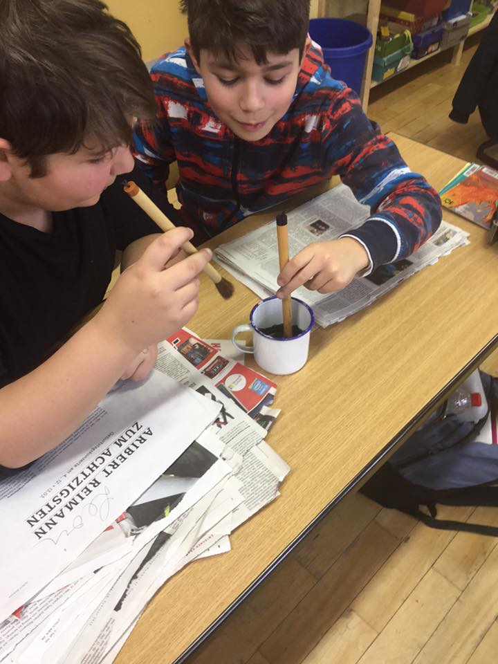 Two weeks ago, we went to the first school, Fichtelgebirge Grundschule in Kreuzberg, the south part of Berlin. It was the 5th grade students and many spoke good English. They were very excited to have a Japanese calligraphy and what´s more, they were very shocked to hear Japanese language.