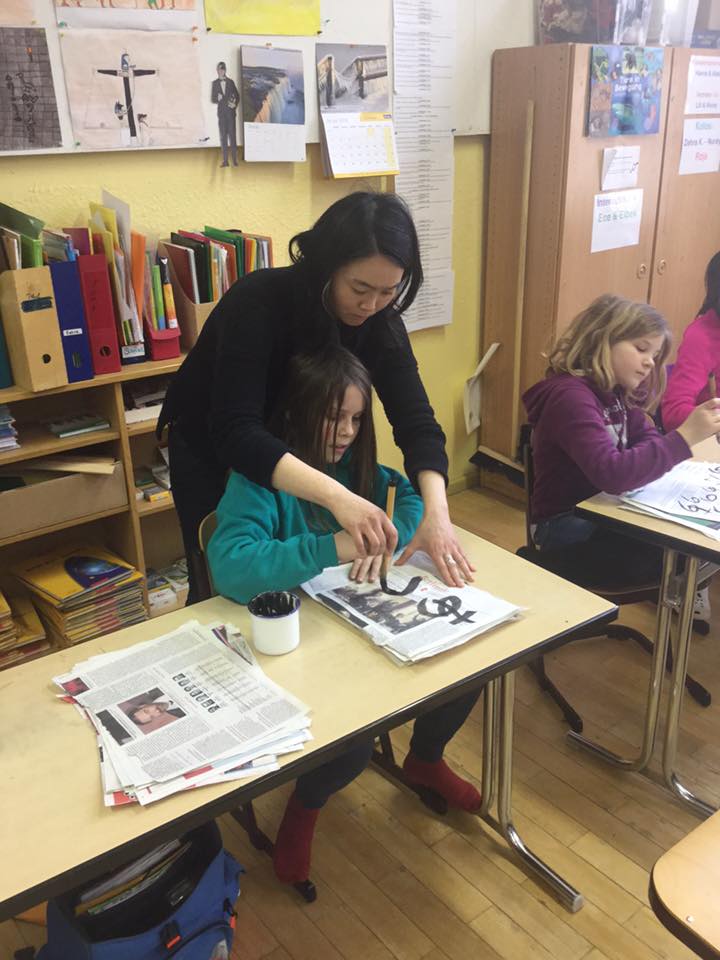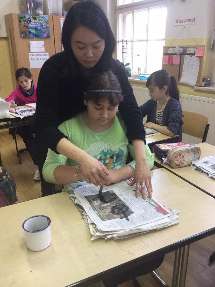 Recently I had a proposal by Kalli san who is one of the main members of Go association in Berlin for calligraphy workshops in the public schools. I was a little worried because my German is rather terrible but since Kalli san told me that he would accompany with me, I agreed.