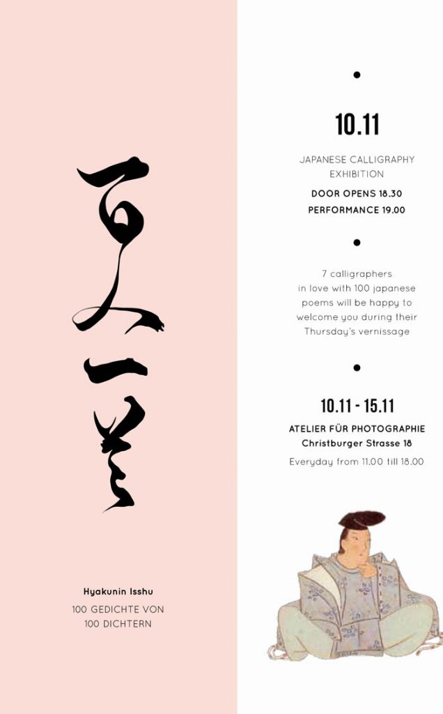 I like to invite you to our exhibition, “Hyakunin Isshu – 100 Gedichte von 100 Dichtern-“.