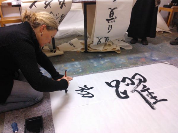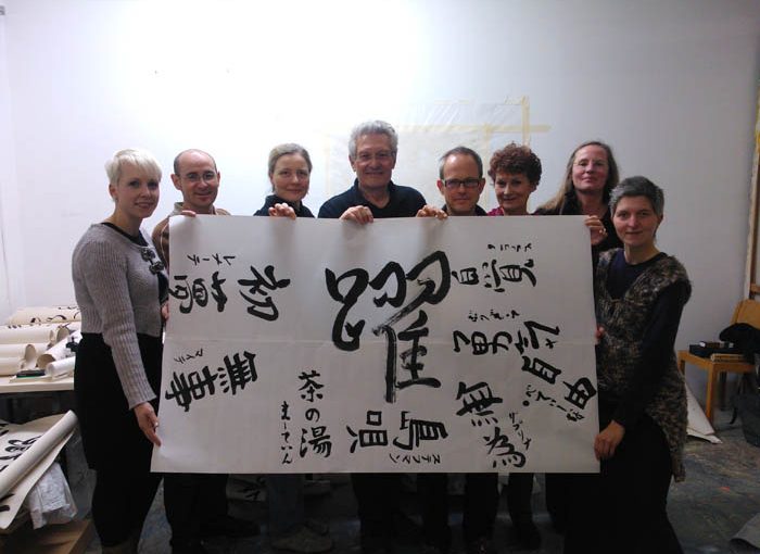 Sabrina, the girl in the front wrote 無為 (Mui) means doing nothing. Klaus san wrote 自覚 (Jikaku), awareness. And Renate san, on the floor wrote 初夢 (Hatauyume) since she had an interesting first dream on the New Year.