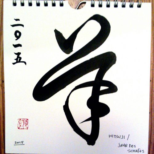 “羊 (hitsuji)”, 2015 is a year of sheep. Hope it becomes a peaceful year like sheep are.