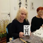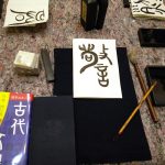 Everyone picked their favourite words and wrote them in ancient letter, kodaiji(古代字). Kodaijiis one of the styles used for seals in Japan nowadays but it has a unique form and look funny and friendly. Even you don’t read Japanese, you may feel familiar as they look like drawings.